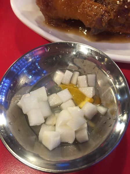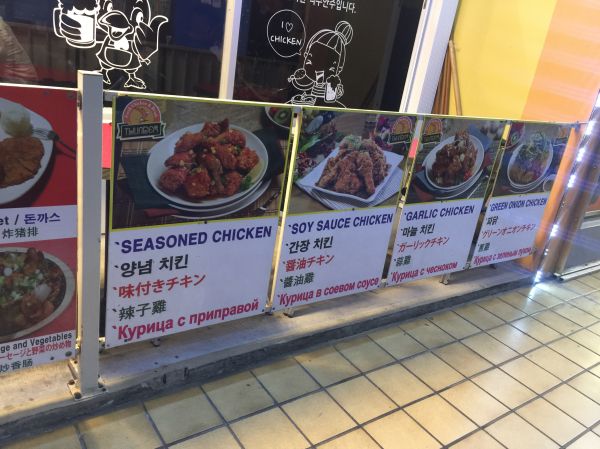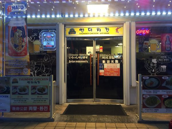 意外發現好吃的韓式炸雞! 店名:THUNDER CHICKEN 地點在蘭花飯店旁,就在ABC STORE與ORCHID HOTEL的中間,這間韓式炸雞在一樓,韓國人開的喔! 他們的炸雞都是先用有點辣的調味料醃過的,炸完在淋不同的醬料(有辣、有甜) 但基本上肉還是有點小小辣。老板娘說韓國3、4歲的小孩都可以接受,但實驗結果。。。台灣小孩沒練過覺得很辣 XD (偷偷說~~醃蘿蔔是可以續盤的喔)