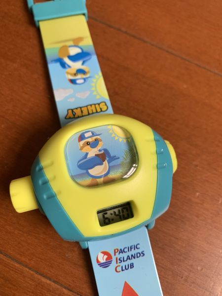 非常棒的小禮物。 入住PIC飯店時,櫃檯會給一個信封,裡面有房卡、毛巾卡、兒童小兌換券、預約秀;兒童兌換券一定要去換,我們換的是手錶,非常可愛,兌換地點在吃早餐的另一端,賣商品店的,直拿兌換卡跟店員兌換。但前提先把兌換券上填寫小孩的名字(中、英都可以)及房號。