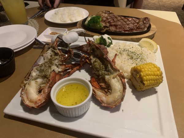 這是我們慶祝紀念日的一餐,也是這次旅程最滿意的一餐,我們點了PrimeNYsteak Set 和Lobster Dinner Set,服務員非常有禮,對我想跟活龍蝦拍照的要求相當配合,牛排肉味濃郁,不過有一點筋,龍蝦則鮮甜而有咬勁,值得一提,Lobster Dinner Set 裡的 Garlic Rice 與及烤栗米同樣十分美味,水準不下於主菜。