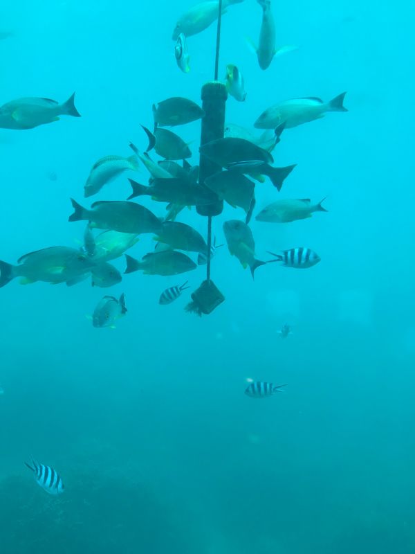 南部自駕遊的其中一站,也是一定要來的景點喔!雖然門票不便宜,但是我們還是有進去到裡面看喔!經過了門口後,是一座長的橋,走著走著看到了很多人在浮潛、潛水,感覺很好玩,到了準備要往下的海底展望台,還有一個賣東西的小商店,有賣水、小物品等,看到樓梯往下走,就是海底展望台了!在這裡好像身處在海底淺水艇中,從玻璃窗中看到了好多不同種類的魚,很漂亮,也看到有人在底下潛水,可以來體驗看看!