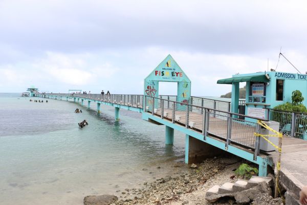 自駕一日遊,沿著海岸線公路直直的開,就可以找到這個地方,遠遠的就看見許許多多的人群,都穿著著潛水裝備,準備下水來看一看水裡世界,當然如果不想水也可以沿著橋直走到前方的觀景塔,不過這是需要門票的,所以我們只有在門口拍拍照來捕捉這美麗的風景。