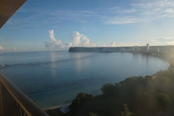 太平洋之星酒店Pacific Star Resort and Spa前身名子是關先萬豪度假酒店及水療中心。因為當我在網絡上預訂酒店是萬豪酒店,但當我透過關島之家預訂活動時,列明的酒店卻沒有萬豪酒店,後來在網上一查後得知,這酒店改名了。 我將會在關島逗留6晚,頭4晚我會住這間酒店,Pacific Star位於杜夢灣,屬於酒店街一帶,出入也較方便。 由於香港飛往關島的航班每星期只有4班,時間全都是在晚上起飛,到達關島都必定是在早上5:45,所以我們在hotels.com預訂時已標示了航班到達時間,及說明來這是honeymoon之旅,希望酒店能安排我們提早入住。 到達關島,取行李後我們便依照路牌taxi指示往左走,到達的士站,然後的士站頭有個牌列明了大部份的酒店的車資價錢,所以我們也十分安心。在關島乘搭的士,行李是每件USD1收費,所以2個行李箱就是加USD2。從機場到酒店,車程10分鐘不到,車資是USD15,加上2件行李USD2,再加上小費,我們給了司機20美元,不用找回。車資不算便宜,但也能接受。因為我知道如果要求酒店派車來機場接,是每位15美元,2位加起就是30美元,另給小費,所以,也是坐的士比賽划算。 我們到達酒店是早上6:30左右,到前台問能否給我們提早CHECK IN,及需要額外收費嗎? 我們說在預訂時已列明要求,出發前也有EMAIL給酒店,可惜未有得到任何回覆。 櫃檯職員想了一輪之後便向我們說: Congratulations,然後就可以。我心想,到達這句Congratulations是恭喜我新婚來honeymoon, 還是恭喜我能免費提早check in呢。不管了,我們立馬上房放下行裝,房間位於17樓,房間頗大,廁所梳妝台也大,燈光很夠,走到露台,看到的海景更令我哇哇聲,很美呢。除了房間裝飾比較舊之外,其他一切都令我十分滿意。 欣賞一切景色後,接近7時,打算前往廸廸多早市看看,但後來發現能去的車都已經過時了,為有步行前往Pika Cafe享用早餐。 在酒店住了幾天,也曾使用酒店的泳池,泳池一旁也有路可走到沙灘。 至於酒店房間wifi只供免費使用有限的幾MB,超出了就需要另外收費,免費絕對不足夠幾天長時間使用。