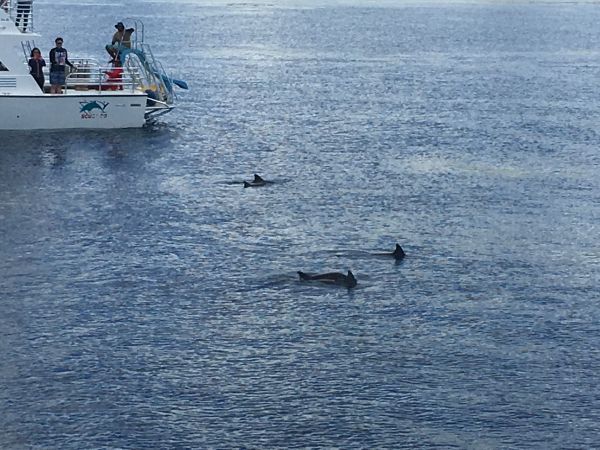 早上會有專人開車接送到搭船地點,老闆娘非常親切,一路上介紹關島景點還有注意事項,這次很幸運看到一大群海豚,追著船尾的浪花,感覺牠們很喜歡追著浪花玩耍,非常棒的體驗!
