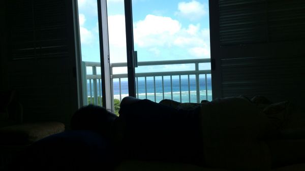 預算不多的客人真的建議考慮Verona,離K-mart又超近,晚上睡不著可以直接走上去shopping! 但如果是要整天待在飯店的人,可以考慮其他間,但,誰去關島整天關在房間呢?XD 去就是要給他24小時都在用力玩啊~! 房間舒適度夠,每天都嘛一躺下去就不醒人事~ 我相信,大家去海島都會想要住在靠海越近越好的飯店(但是價錢很貴喲),nonono~想看海 看倌看看這張(不好意思啦~獻醜了) 是不是躺著就可以看海了~又通風 整個涼蘇蘇的! 雖然Verona離海稍遠一咪咪,但是想玩水的人就直接衝去海邊啦,還待在房裡幹嘛~ 想看海,這樣就夠了啦!(神遊關島去)