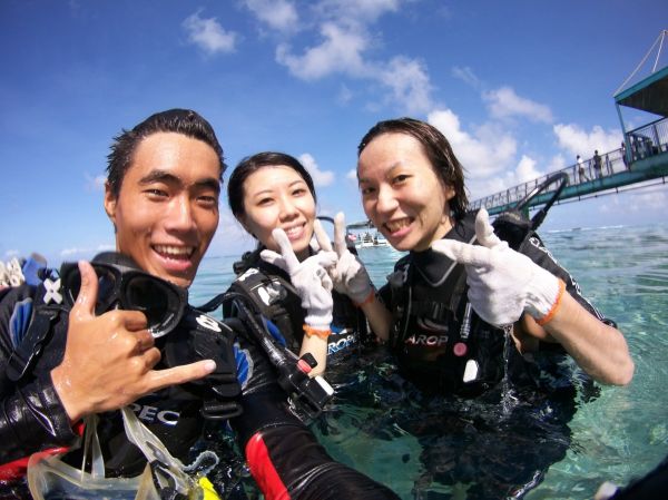 因為是第一次潛水又不會游泳,出發前其實有點緊張,當天很幸運的只有5個人參加,所以有一群教練可以帶著我們5個,覺得自己好像變成VIP了XD 潛水前教練會用活潑的方式告訴我們注意事項及該做的手勢,下水前需要先背著超重的氧氣瓶走一段路,不過別擔心,教練都會過來牽著一起走過去,還先幫我們提著蛙鞋,真的是太貼心了! 雖然沒像其他人有看到海龜,但看到很多可愛的熱帶魚,和海底的美景,讓我也徹底愛上潛水了,下次有機會還要再來