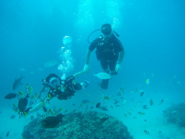 第一次潛水,在這邊很放心,因為海灣內都沒有浪,行前的解說也很清楚,真的看到很多的魚,雖然沒有看到海龜,但海水很清澈,能夠很舒服的欣賞,如果還能再去關島,一定要再去潛水