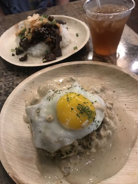 這間是上網看到有飯的食物,來關島吃太多美式也想吃飯了,當初在ig看到都是韓國人推薦,點了她們的招牌,中間是漢堡排上面太陽蛋再淋上他的醬汁,還蠻好吃,但奶油醬吃多會膩。