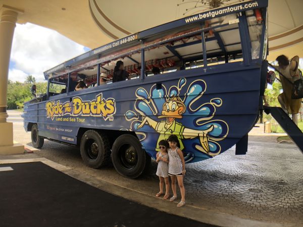 帶小小孩子來關島ㄧ定要做鴨子車,上車前會發放鴨子口哨讓你呱呱叫,吹著涼涼的風帶你市區觀光,車子下水時驚呼連連