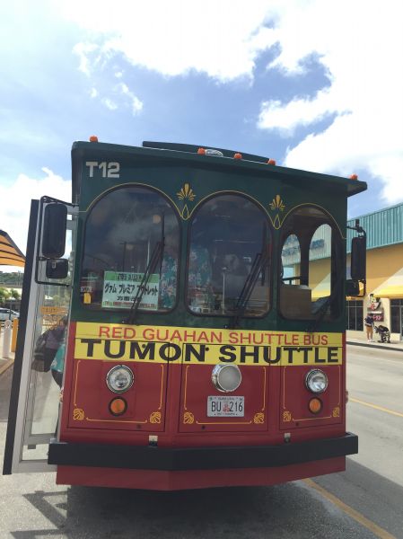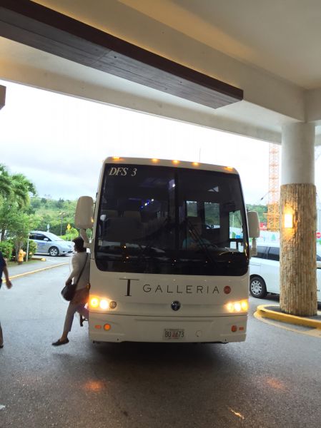 關島最普遍有DFS 的免費車,白色,只送妳到DFS , 或者搭回飯店. 遠程美景到不了.