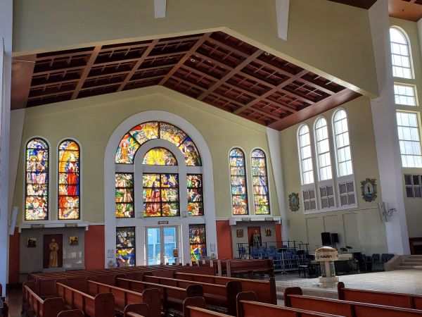 關島聖母瑪利亞教堂就位於西班牙廣場旁,裡面的彩繪玻璃很漂亮,陽光透進來,很有聖光普照的感覺,而且仔細看彩繪玻璃的內容可以發現除了耶穌受難的故事,還有亞瑟王石中劍以及巫師梅林,很有趣。對基督徒上教堂不熟悉的人,因為這是平常真正有在做彌薩的教堂,也可以透過參觀感受上教堂的氛圍。