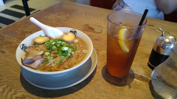 5. 這次的藤一番拉麵我們選擇離悅泰飯店較近的 1號店,看到門牌的可愛幸運烏龜就知道店到了,我們點了NO1.醬油拉麵(Soy Ramen) 跟NO2.的豚骨拉麵,味道相對台灣吃到還要重鹹,但還算不錯吃,也不貴,另外插曲,服務生送上一瓶透明的液體,我們還以為是怕太鹹可以加的白開水,結果一加拉麵瞬間變甜的,整個無言,哈哈..