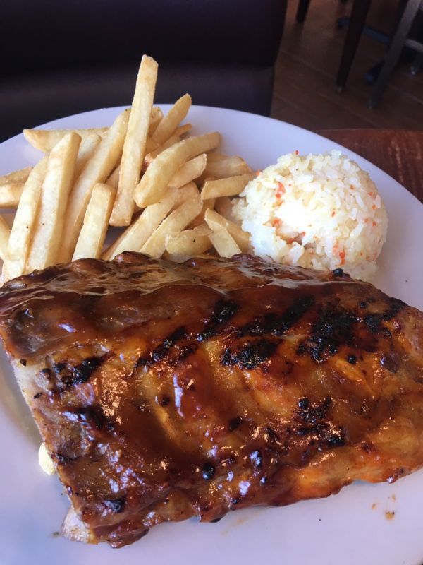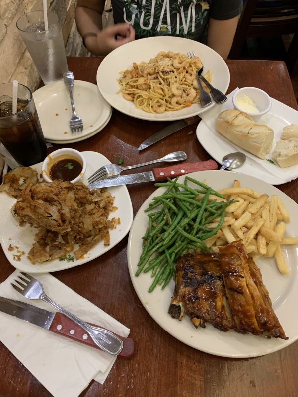 抵達關島的第一餐 距離住的悅泰很近,跟老公散步過來,在接近晚餐時間沒有訂位的情況下等了約10分鐘就有位子了,強烈建議大家帶件外套(冷氣超冷的) 附的麵包好吃!肋排好吃!烤雞好吃!烤蝦串也好吃!