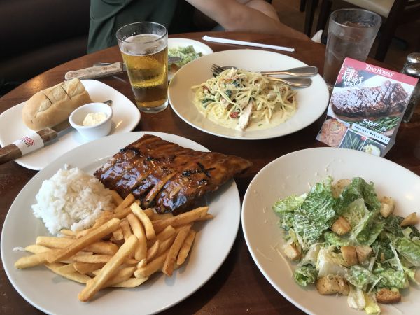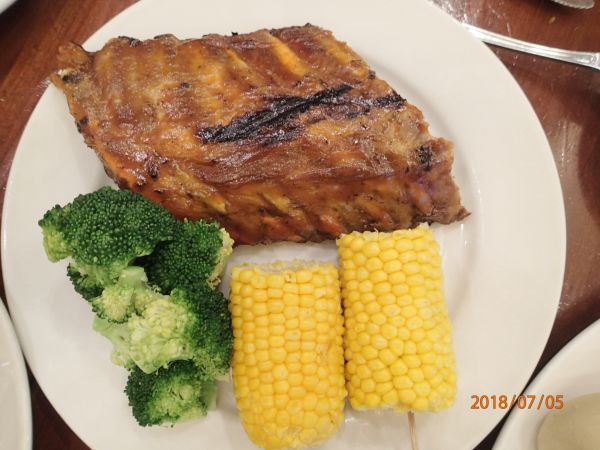 這間在關島出發前就有在關島之家看到,列入來這就要去吃的美式餐廳,這間離悦泰飯店很近,第一天沒有租車,所以住飯店附近走路過去10分鐘,點了網路上很多人推的肋排,義大利麵,沙拉只要再加四塊美金,美式份量都很大。