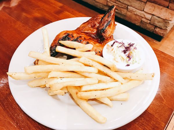 這家餐廳以前在台北有,目前也沒有了,所以很開心到關島可以吃到美味的食物,因為好好吃,且可以先在台灣買餐卷過去在點餐抵消費,有比較划算呦!我們點了很多道食物,有豬有牛有雞有甜點有飲料有調酒等等,我來分享我喜歡的食物們,因為我不吃牛啦!半隻烤雞香酥好吃,不吃牛除了豬可以考慮這道烤雞料理,鮮蝦蔬菜有一點微辣但是麻麻的好吃到不行,我覺得必點開胃菜首選,亂點的草莓奶昔跟調酒柯夢波丹都好好喝的想續杯,可惜當天鼻子過敏的只能偷喝幾口過癮啦!有機會一定要來吃吃看!