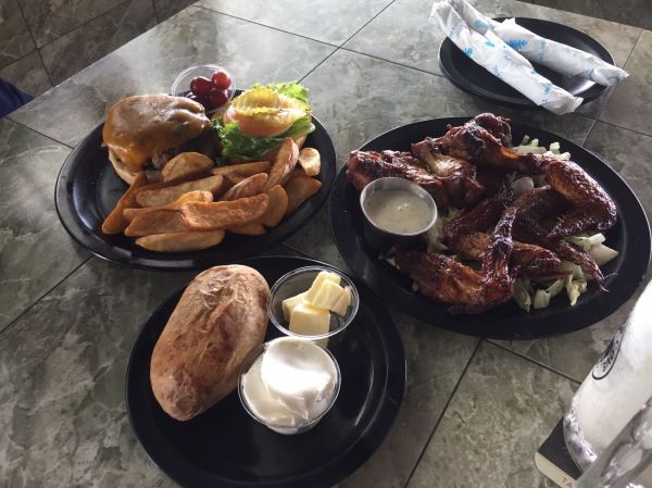 今日租車,想要環島一圈,開著紅色的馬2,就繞道了東岸,聽說這家漢堡很美式,點了招牌餐,一口咬下,哇〜 肉汁美味又鮮甜! 烤馬鈴薯配上雞翅,讚! 真的值得來一趟!