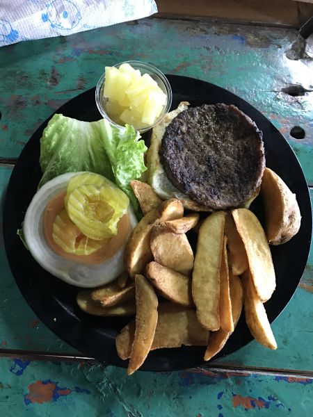 作為南部環島的中繼站剛剛好,漢堡肉很厚,不很餓兩個人吃一份剛好,老闆最後還請我們吃優格冰淇淋呢!!邊吃可以邊看海,還有外國人隨興就在餐廳外的籃球場打球了呢!!