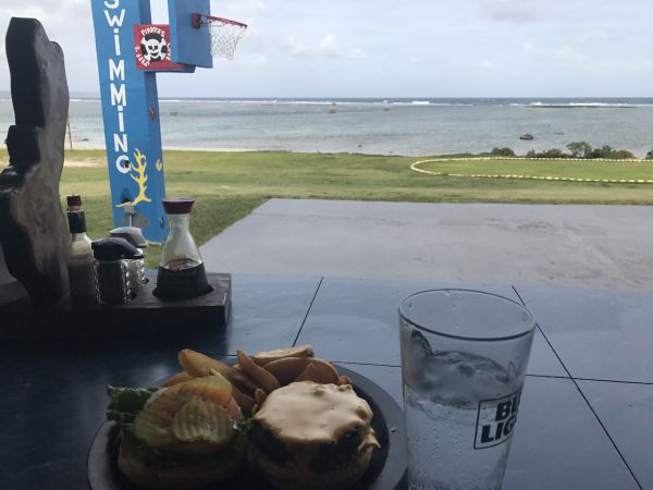 泰拉佛佛公園實彈射擊完, 也3點多了,我們就前往Jeff來去吃漢堡,我們點的是招牌牛肉堡肉汁鮮嫰相當美味在淋上起司香滑入口,口感非常紮實,時間也算是下午茶了吧,吹著微風、吃著美食舒服的搭配海景。終於知道為何當地的漢堡都無法蓋起來了,一半是生菜、一半是肉片+起司,每一口都得張大嘴,嘴吧是很酸的呢~當地有名的漢堡第一間是Jeff第二間是Dos在K-Mart對面,聽潛水老闆娘珊珊說2間是同一各老闆前後開的。這次無緣吃Dos,下次有機會擱再來。