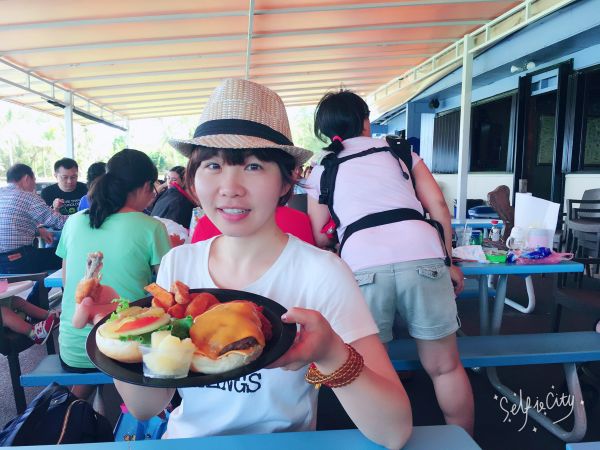 這裡除了可以飽餐一頓外,更是遛小孩的好地方,四枚小孩經歷整個早上的行程、狠狠啃了炸物、漢堡後,又奔跑了一陣,下午在車上也一路好眠,讓下午行程更順利XD 這裡的海景與造景像漫畫般的夢幻,所佈置的場景宛如置身大螢幕中,此時來匹馬、來個牛仔吆喝兩句、喝杯啤酒彷彿才是道地口味!