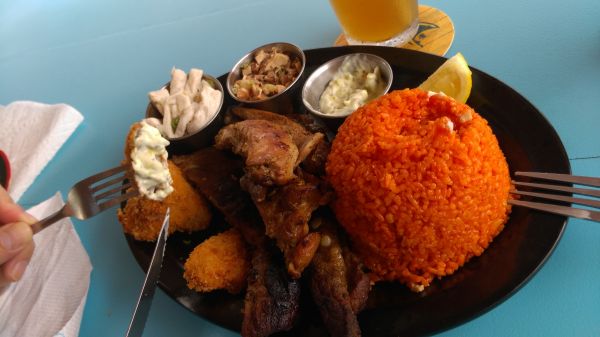安排了一天自駕要去南部觀光,順便到有名的傑夫海盜餐廳用餐, 餐廳裡的裝潢很特別充滿粗曠的海盜風格,招牌漢堡美味多汁,旁邊還有現炸的薯條蔬菜陪襯,炸魚塊也很不錯,餐點的味道跟台灣的美式漢堡店差不多,算是關島南部少數的餐廳,如果順路可以進來吃個飯拍拍照