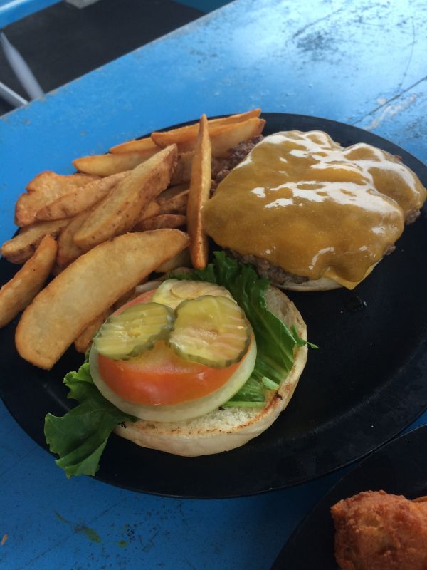 這次租車特地繞到遠一點地方晃晃~看到這間阿物去的Jeff'S漢堡~當然一定要品嚐一下~ 漢堡一定必點,我們還加點了炸雞~炸的酥酥脆脆的...很好吃~Jeff還到處和客人聊天~看的出關島人的熱情~吃的超開心