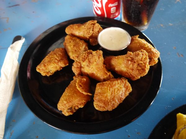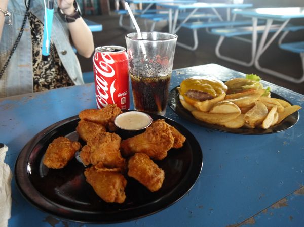 這天行程是環南半島,晚餐就選擇到海盜餐廳吃最有名的漢堡囉。我們選擇的位置是在戶外,有一點蒼蠅飛來飛去,不過等到期待已久的漢堡送到,也沒有時間去理會牠了,因為真的好澎派阿。厚厚的一片肉排,上面鋪著一層濃濃的起司,一刀劃下肉汁就從中間流下來了,吃下去也沒有讓人失望,真的好好吃喔。我們還加點了炸雞翅,沒有到非常特別,不過也不難吃啦。