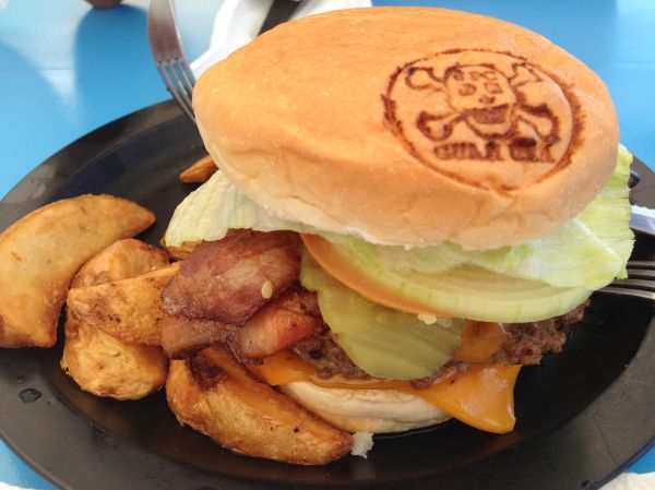 漢堡是必吃,除了肉多汁美味之外,連漢堡麵包還印上餐廳的海盜的Logo唷~