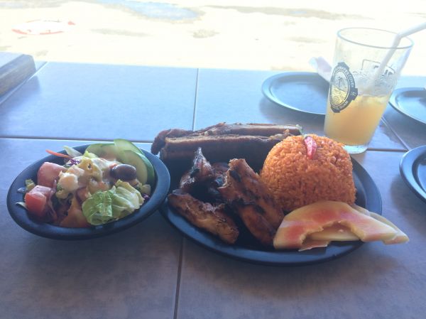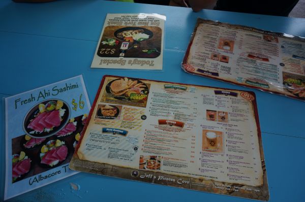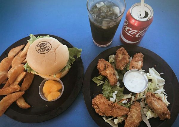 位在4號公路上的Jeff's Pirates Cove傑夫的海盜窩,我們點了 炸雞和和海盜漢堡 漢堡生菜滿多的 肉咬下去後肉汁也多 餐廳後方有個籃球場,也可以走到海灘,能夠在一個面海的餐廳吃飯真的是人生享受。怕曬的話,也可以選個面海的餐桌享用美好的餐點。