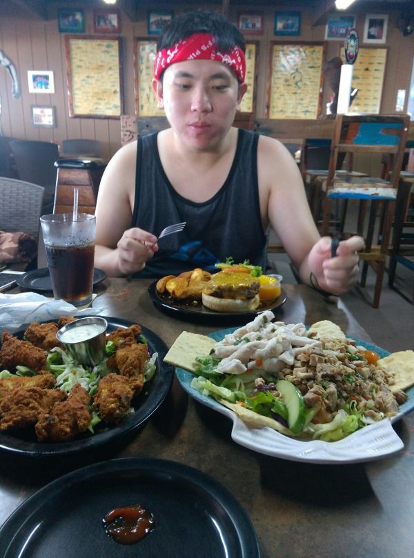 餐廳裡的食物也都是大份量的美式漢堡,烤雞,沙拉!