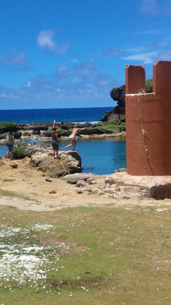 伊納拉漢天然池之前有看食尚玩家介紹過^^當天很多當地人跟旅客在這邊游泳可是沒有人跳水,旅伴很想看怎麼跳水ha.他一直覺得水很清澈又不深很想知道怎麼安全入水但一直到我們離開還是沒有看到哈^^水很涼在大熱天的關島泡過水真的能降溫不少^^剛好環島尾端能這麼個地方歇息泡水實在是愜意啦^^默默有種在泡冷泉的感覺⋯⋯但紫外線還是很強就是哈哈
