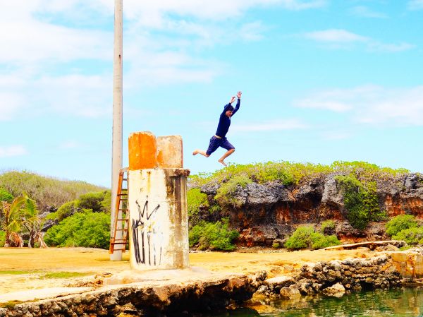 很漂亮的地方 還但跟魚眼公園的水清透度比起來略為失色~不過我們在這個點也是玩水游的很開心 玩水的話建議要穿礁鞋下水比較安全 礁石都還蠻利的要很小心走!跳水台板已斷但當地人還是跳的很high