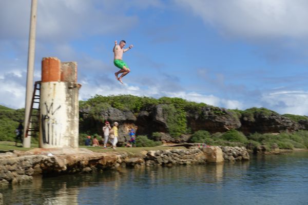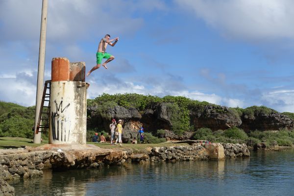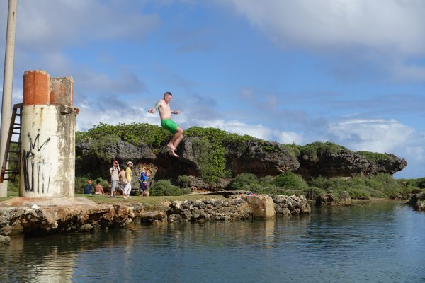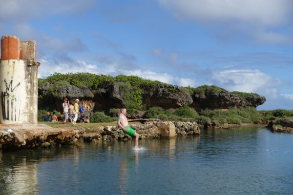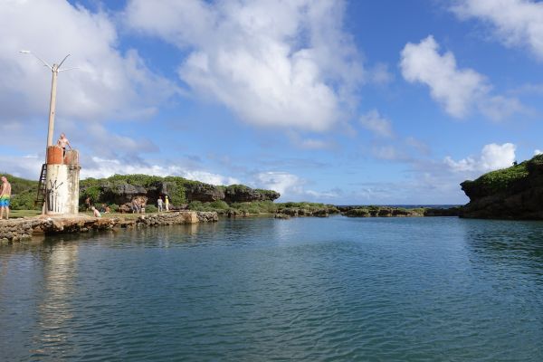 開著EZ租車所提供的大黃蜂,當然是要南部環島囉!! 也不能錯過天然的Inarajan戲水池 ^^ 這天天氣超好的啦(疑?好像每天都很好~) 因為剛好是假日,有超多當地人、美國大兵、韓國人、日本人來玩... 這裡的池水是海水!! 海水由左邊打入,沿著地勢流到右邊的池子,整個還以為是人工泳池勒! 池水哩,都有著魚兒,有些魚兒還蠻大尾的....真的超酷的!! 還能拜託幾個美國大兵示範跳水讓我拍照,他們真的很熱情,連跳好幾個讓我拍勒!! 沒有去PIC的朋友們,歡迎來這邊玩水唷!! 小朋友也很適合的(有分深淺,大自然是不是很貼心)