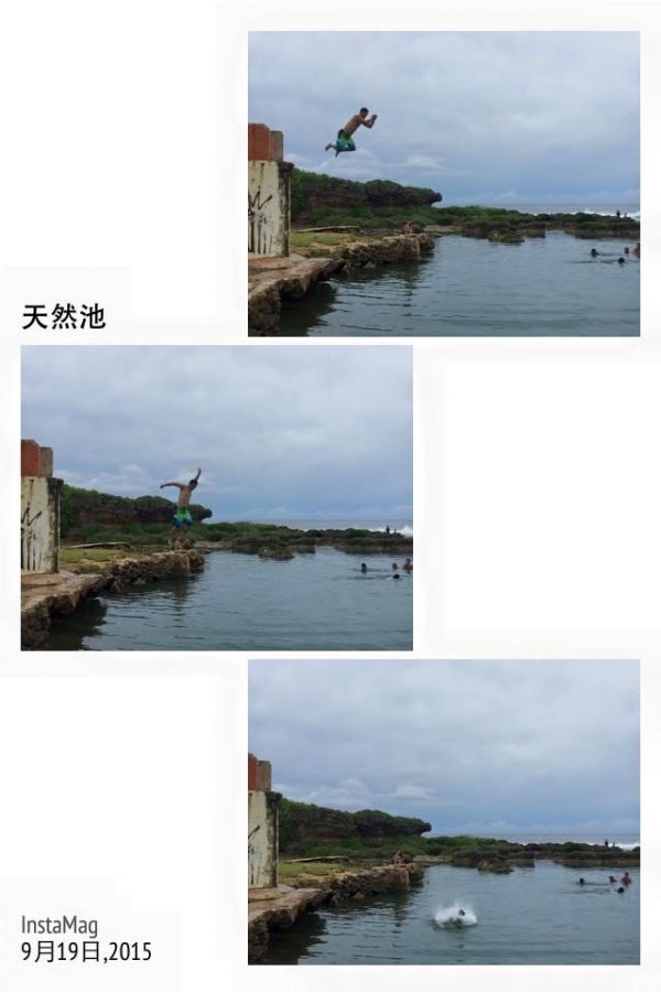 都來到這天然池了,爸比說當然要跳一下水啊~於是.....他跳了2次,他說站在快2樓高還真抖咧~