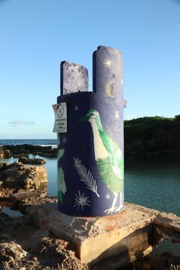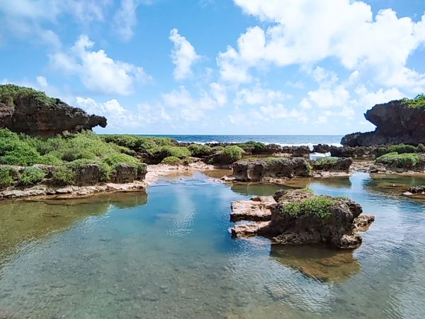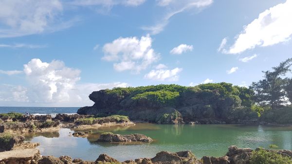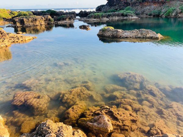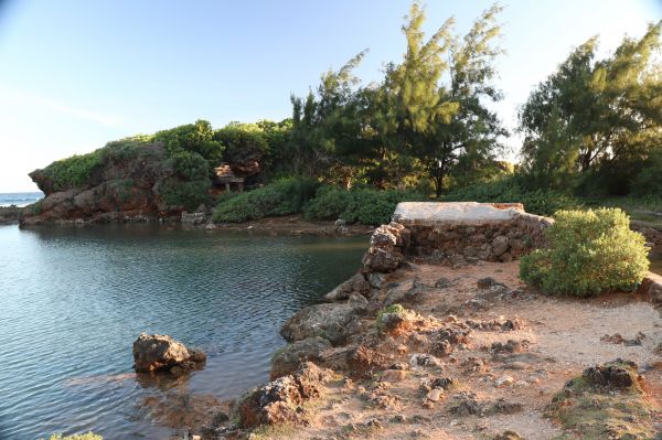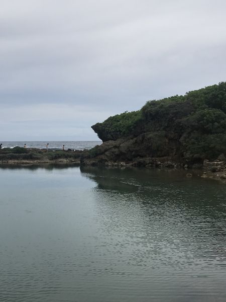 這邊!超美的!!看得出歷史的痕跡,由珊瑚礁岩圍起形成一個天然的游泳池,這邊很好拍照,有一個小拱橋(?)可是我自己不敢爬上去,是有看到蠻多人爬上去的,但感覺他有點脆弱,所以我也只站在旁邊拍拍照,關島的海水都非常的清澈,這邊往下看都是魚