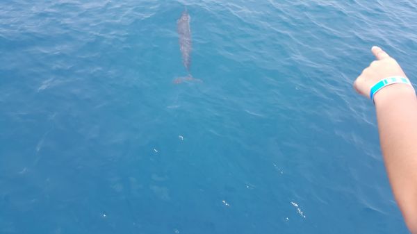出海賞海豚,本想天氣陰天浪較大,看到海豚的機會應該不大,因為船行駛很長的一段時間,本想沒機會看到海豚了,忽然間工作人員聲說話並用手指著前方,大家都往手的方向看過去,遠遠的有看到,當船慢慢靠近時,就看到好幾隻海豚在水中,之後船長有開到另一個地方,有出現5-6隻海豚,這一趟真值得啊!