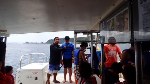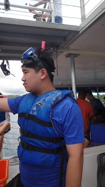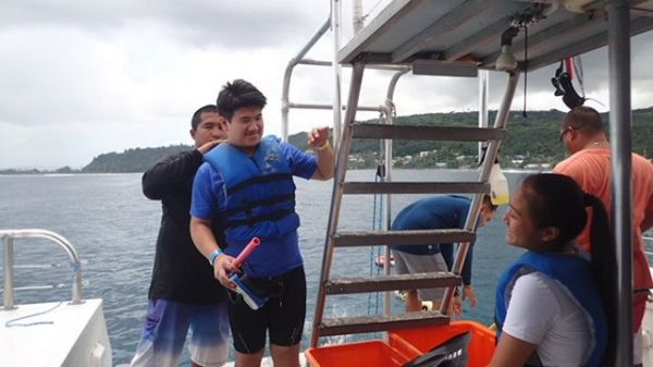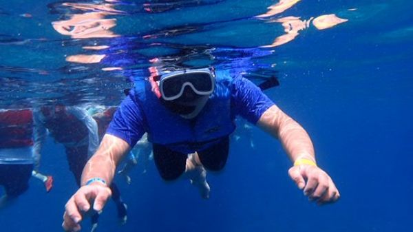 第三天來到ABC水上活動,來到浮潛的活動時,ABC人員在下水前都很仔細的介紹,非常注重大家的安全,一再的強調要小心,請一位旅客當示範,讓大家都熟悉,要下水前還會一個一個檢查救生衣是否有穿好,扣好,等工作人員都確認完畢才可下水,大家只要安心的玩水,安全就交給工作人員囉!