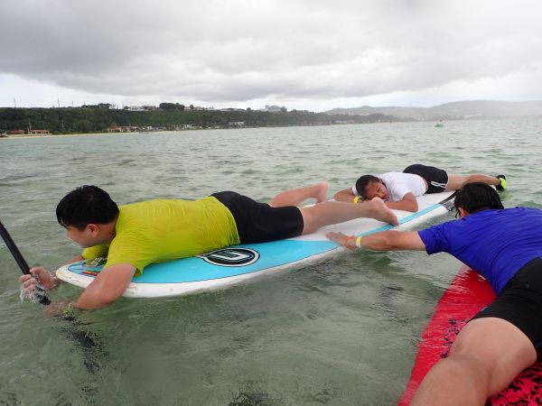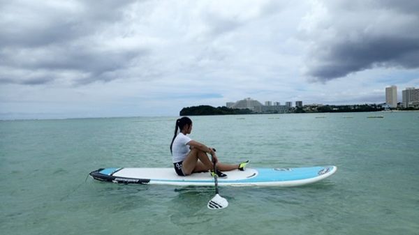 當玩完獨木舟之後,還有衝浪板可以練習,玩衝浪板不是一下就可上手,要練習平衡感,不是一般人可以玩的,剛開始都會一直掉進水裡,這邊就可以將你的體力耗掉一大半,當你能自行站在衝浪板上時都已經過了半小時之久了,當練習累了還可以躺在衝浪板上曬曬日光浴,要小心後果就是會曬的很黑喔!關島的太陽不會手下留情的喔!