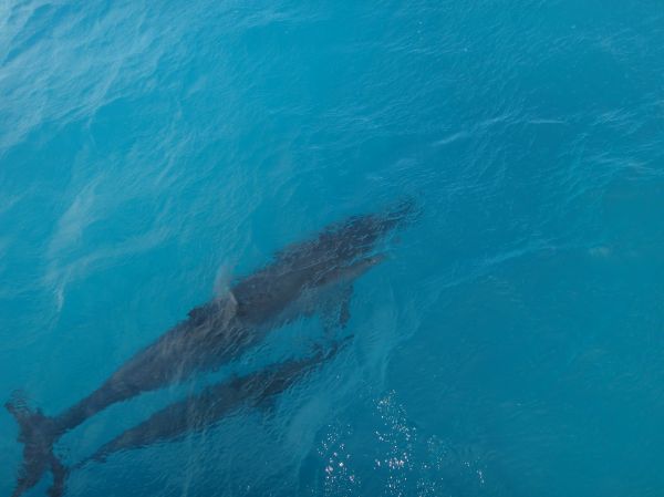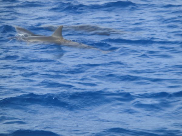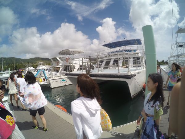 今天去搭船出海看海豚+浮潛+釣魚,聽說90%的機率能看到海豚。從ABC到碼頭(Agat)坐車要花20分鐘,開船後在花30分鐘到達定點,還真的就看到大概10隻左右的海豚家族。看完海豚後,船尾有準備下海浮潛的活動,而不想下水的人,可以選擇在船頭釣魚,99%的人都去浮潛,因為海裡熱帶魚很多。