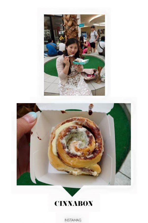 來這除了一定要去MACY'S採購GODIVA內行人知這裡最便宜最划算,我們也掃了不少貨呢...在商場逛累了還可以去吃必吃的肉桂捲,原本還擔心肉桂味太重,結果竟讓人想不到的美味,還跟兒子一起搶食咧~(甜點永遠吃不飽)
