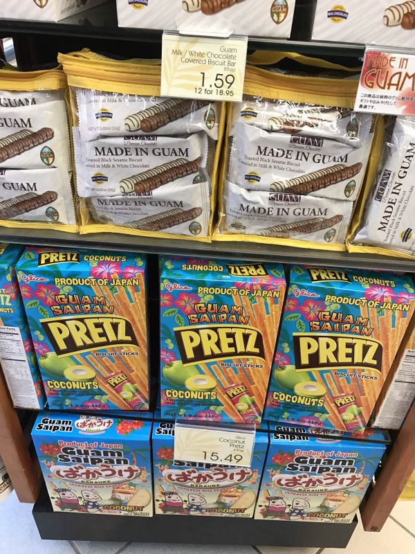 K-Mart很像台灣的愛買或家樂福之類的大賣場,據說關島週遭很多珊瑚礁,所以水都會含有石灰,如果要喝水,就必須購買礦泉水飲用。而全關島賣水最便宜的地方,我認為是K-Mart,當初五天四夜的旅程,除了飯店跟導遊送的共四小罐的礦泉水以外,我們還另外在K-Mart買了三罐大罐的礦泉水才夠用。基本上應該只會需要在K-Mart購買食物,比如關島出產的巧克力、水果乾跟香蕉片,另外還可以購買保健食品,我大概買了快十罐吧!