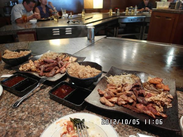 除了鐵板燒之外還有一個小小的Buffet 有沙拉、麵包、涼菜、烏龍涼麵、湯、蛋糕、水果、甜湯 還有附一個大碗公讓你自製凱薩沙拉 鐵板燒的套餐部分一份大約是17塊美金 有各種combo讓你選,從牛排/鮮蝦/雞肉/鮭魚 四選三的組合 鐵板燒的味道很不錯 海鮮都很新鮮而且蝦超肥又鮮甜!! 再加上沙拉吧的食物,會吃到超撐! 建議可以先吃完鐵板料理,還有胃再去吃沙拉吧