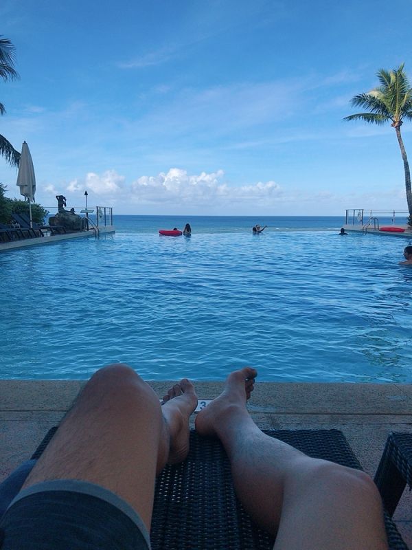 當初為了無邊際泳池訂的,泳池沒有想像中的大,但拍照效果還不錯,地理位置也很棒,住宿地點附近還有一個小型的夜間遊樂園,房內也有提供飲水機,對於我們要泡奶的家長非常便利,缺點大概就是比較舊了,廁所也很小。