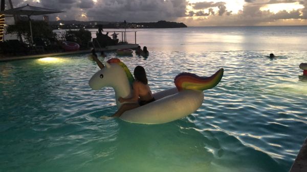 我們住的飯店我最喜歡的設施就是他的咖啡機,煮出來的咖啡香濃好喝,而且關島咖啡香氣非常足又有香草風味的黑咖啡,推薦給愛喝咖啡的人。另一個是他們的無邊際泳池拍起照也非常的美,傍晚跟白天都有不一樣的景色,愛拍照的人可大拍特拍。