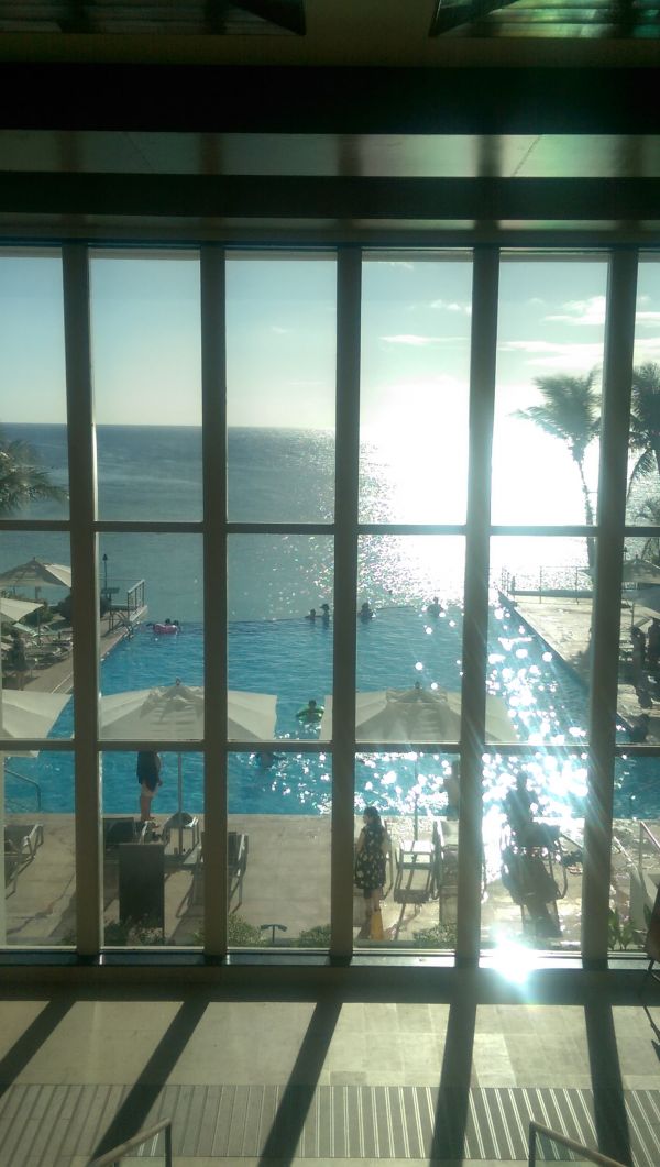 一進入珊瑚礁飯店映入眼簾的就是美麗的海天一線游泳池,當然要趕快來去游泳享受一下囉~非常lucky~6月底前下午2點開始,於泳池邊有無限供應火腿及pizza,游累了還可以補充體力唷~