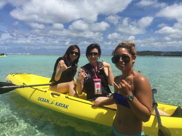 沒到PIC就等於沒去關島! 水上活動超豐富,滑水道、風帆、獨木舟。這次報名了海上風帆,看完教練的教學後直接放棄。。。哈哈~~ 感覺不是我們這2個小女子可以承受的:) 來到PIC可以體驗一下海上獨木舟喔! 非常好玩! 不用預約,只要穿上救生背心拿著划槳就可以下海了。PIC還有好吃的Skylight餐廳午餐Buffet和Pacific Fantasies Dinner Show戶外晚餐秀。