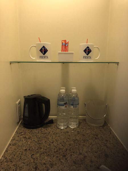 這次很可惜沒有訂到海景房,無法在房間直接欣賞無敵美景,不過房間整體相當乾淨明亮,空間也還夠使用,甚至有一隻可免費撥回台灣的手機,相當貼心