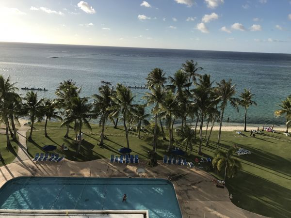 到達關島後, 就直接去酒店check in了, 還預訂了夜晚的酒店bbq 晚餐. 酒店的服務員態度還不錯, 上到房間之後, 感覺也很舒服, 沒有什麼異味, 房間外邊風景很美, 夜晚的酒店bbq晚餐 除了豐富的美吃, 還有精彩的舞蹈表演, 太棒了!