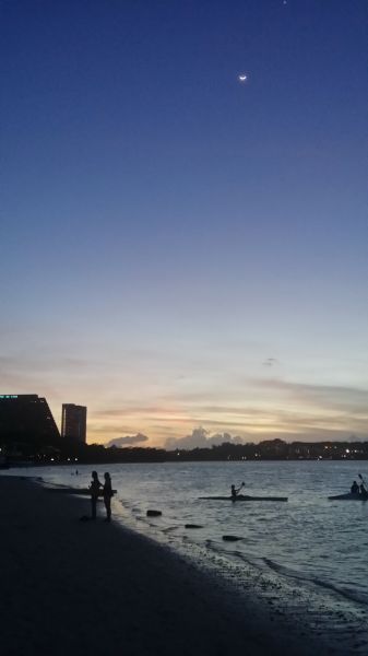 接近黃昏十分,靜躺在躺椅上,感受海風的吹拂,而沙灘的景色又讓人讚嘆,色彩繽紛的彩霞與海面的結合,美的像幅畫,令人拋開都市的塵囂,忘卻那煩人的一切事物。盡情享受當下的美好。