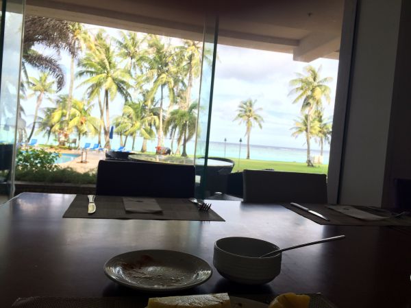 這次來關島我們有加價要面海的房間,所以ㄧ打開門,就看到美麗的關島海灘,讓人都忘記長途又搭夜班飛機的疲憊,本來整個快要睡著了,看到美麗的關島海灘,精神整個都來了,整個就把平常工作疲憊的心情立刻不見了,下次若來關島我還是會住悅泰