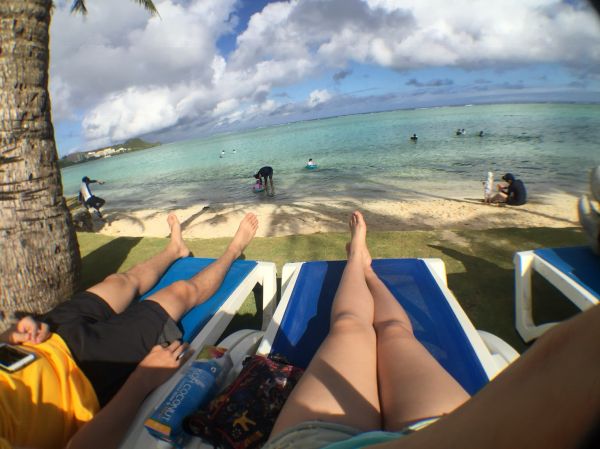 悅泰飯店外直接就連結杜夢灣了! 來到GUAM一定要玩水玩水再玩水的呀! 飯店也很貼心除了早餐、毛巾、救生衣外還提供躺椅讓你無限親近陽光親近海洋,如果你是不敢親近海洋的也不用怕,飯店也有泳池讓你玩耍,真的是0-100歲都很適合到這裡旅遊!