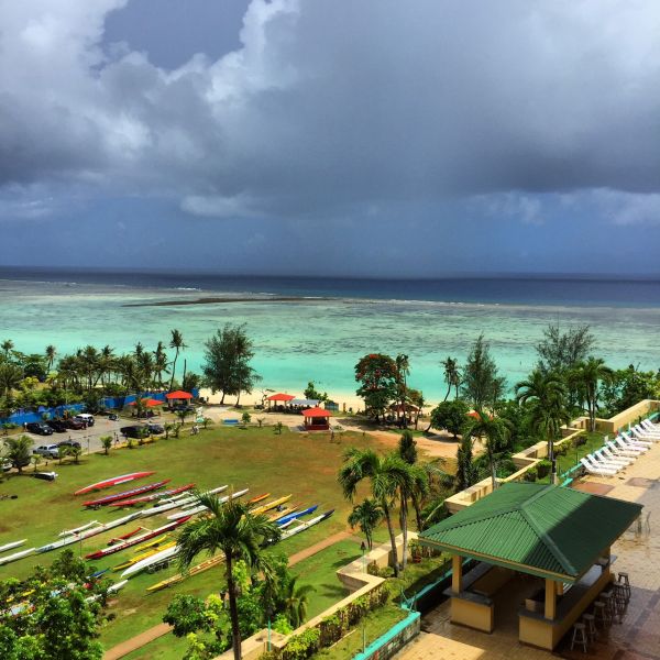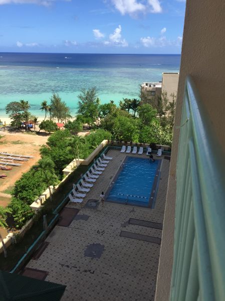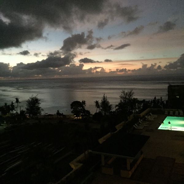美到想當關島的雲~ 這次跟家人來旅行住的就是假日飯店,關島的飯店都是鄰近著杜夢灣實在是太夢幻!!假日飯店也不例外,走下去三分鐘到沙灘,玩累了就上來盥洗,所以會看到很多人披著浴巾在飯店走來走去~ 房間內床位衛浴都很OK,也沒聽到隔音吵雜的問題,每天都會有房內的整理,WIFI都有附設,要說缺點就是每天的早餐都一樣,中美日韓式的早餐都有就但不是很好吃...附上房間外看出去的景,隨著時間變換的天空,等著第一天就被美醒吧
